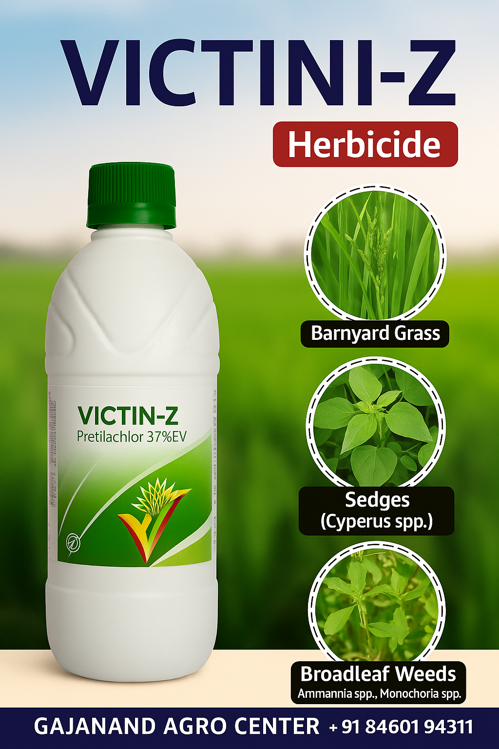 Victini-Z is a selective pre-emergence herbicide containing Pretilachlor 37% EV, specially designed for paddy (rice) cultivation. It provides excellent control over annual grasses, sedges, and broadleaf weeds in the early stages, ensuring healthy crop establishment and higher yield.